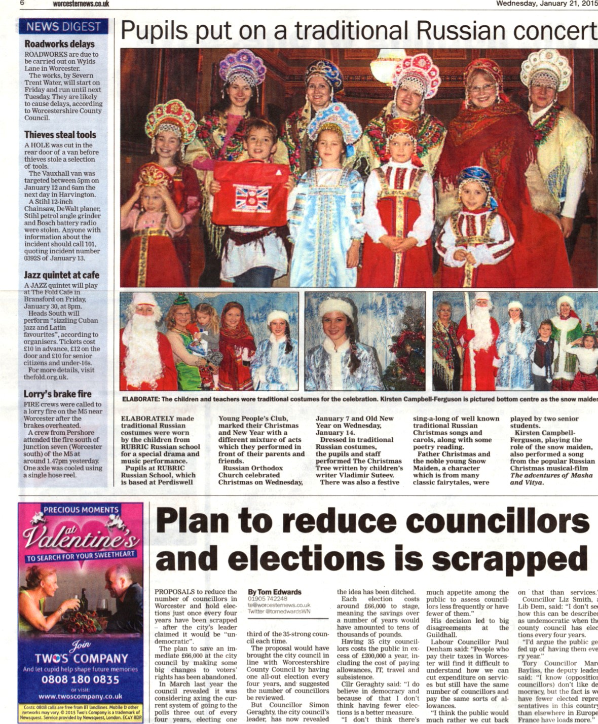 подарками для ребят. Фотогалерея Заметка в газете "Worcester News" от 21 января 2015 |